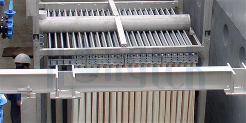 Membrane Bio Reactor (MBR) is the combination of a membrane filtration process with a suspended growth bioreactor. It is a very advanced technology and is now widely used for municipal and industrial wastewater treatment. As its name tells, the process makes use of membranes. The nominal pore size of the membranes is small (up to 0.15µm), by which not only activated sludge but also coliform bacteria and virus can be shut out. The mixed from the biological treatment can be separated clearly into solid and liquid. It assures almost 100% removal of SS and no carryover of SS into the effluent.